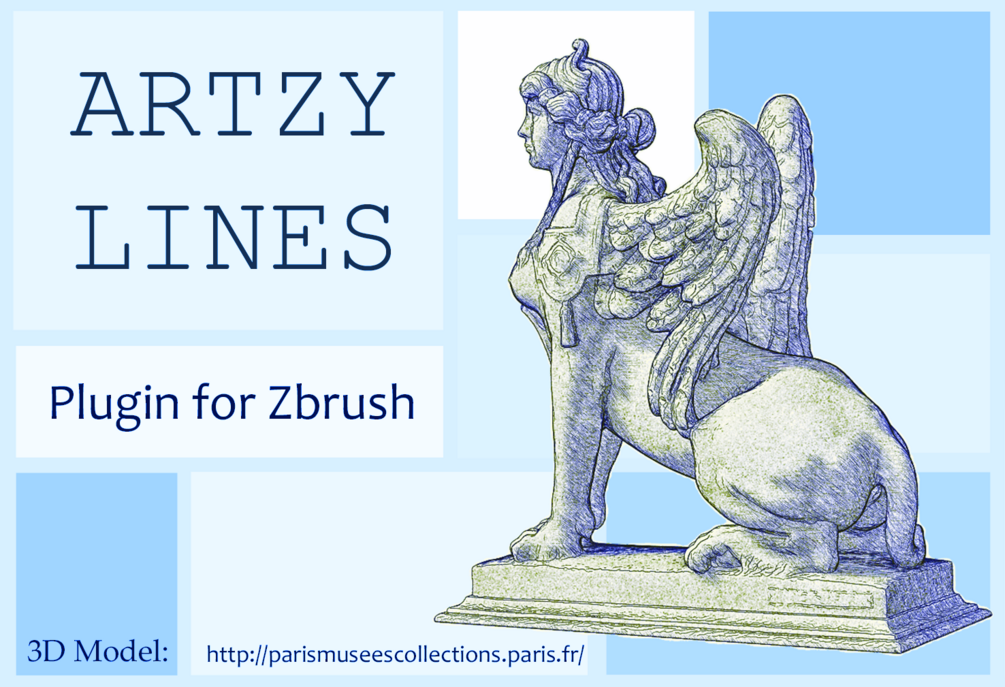 ARTZY LINES is a unique non-photorealistic rendering (NPR) plugin for ZBrush that works directly in mesh space. Unlike the built-in NPR filters, this approach is almost real-time and generates lines right on the surface of your model.